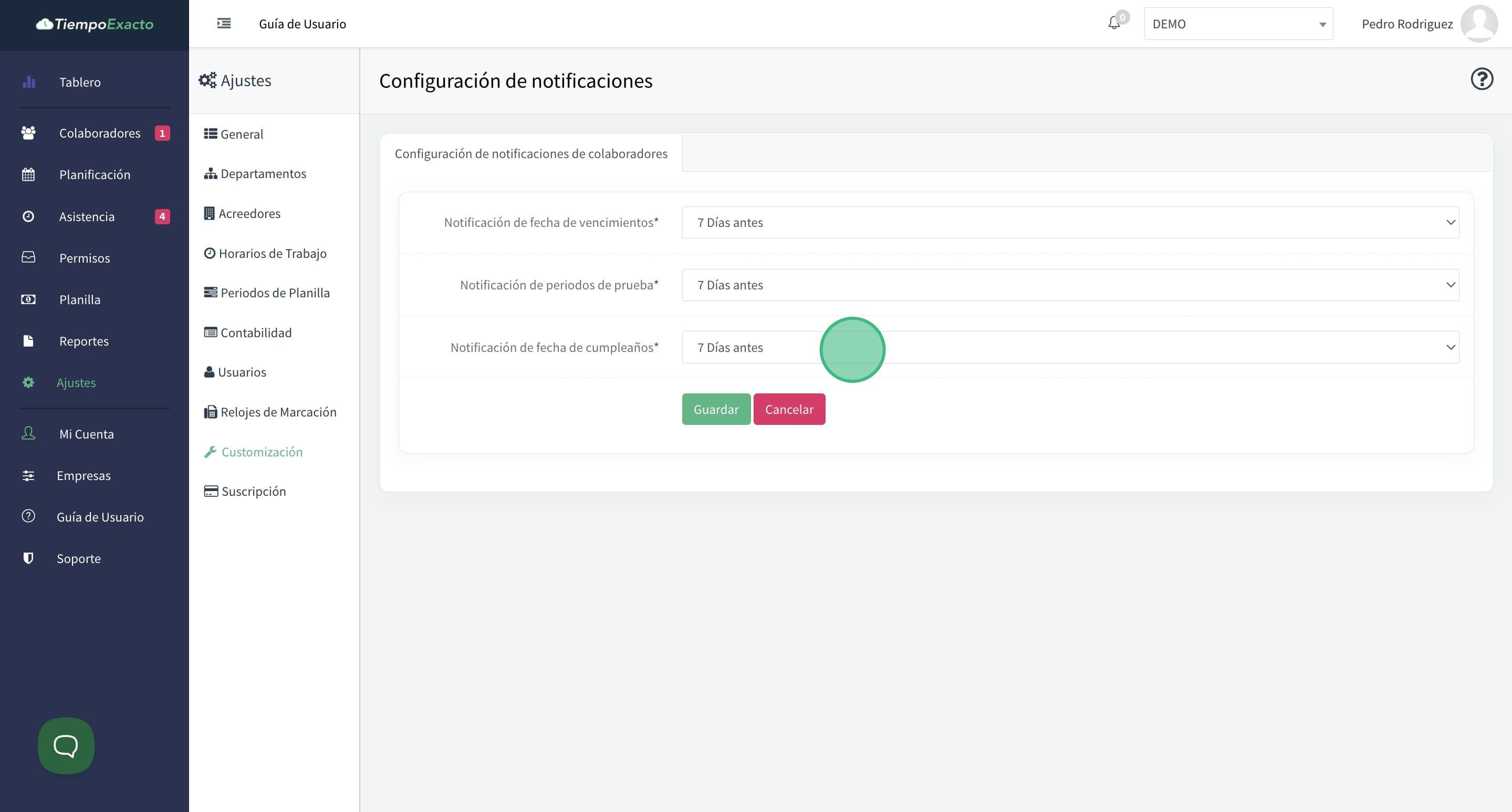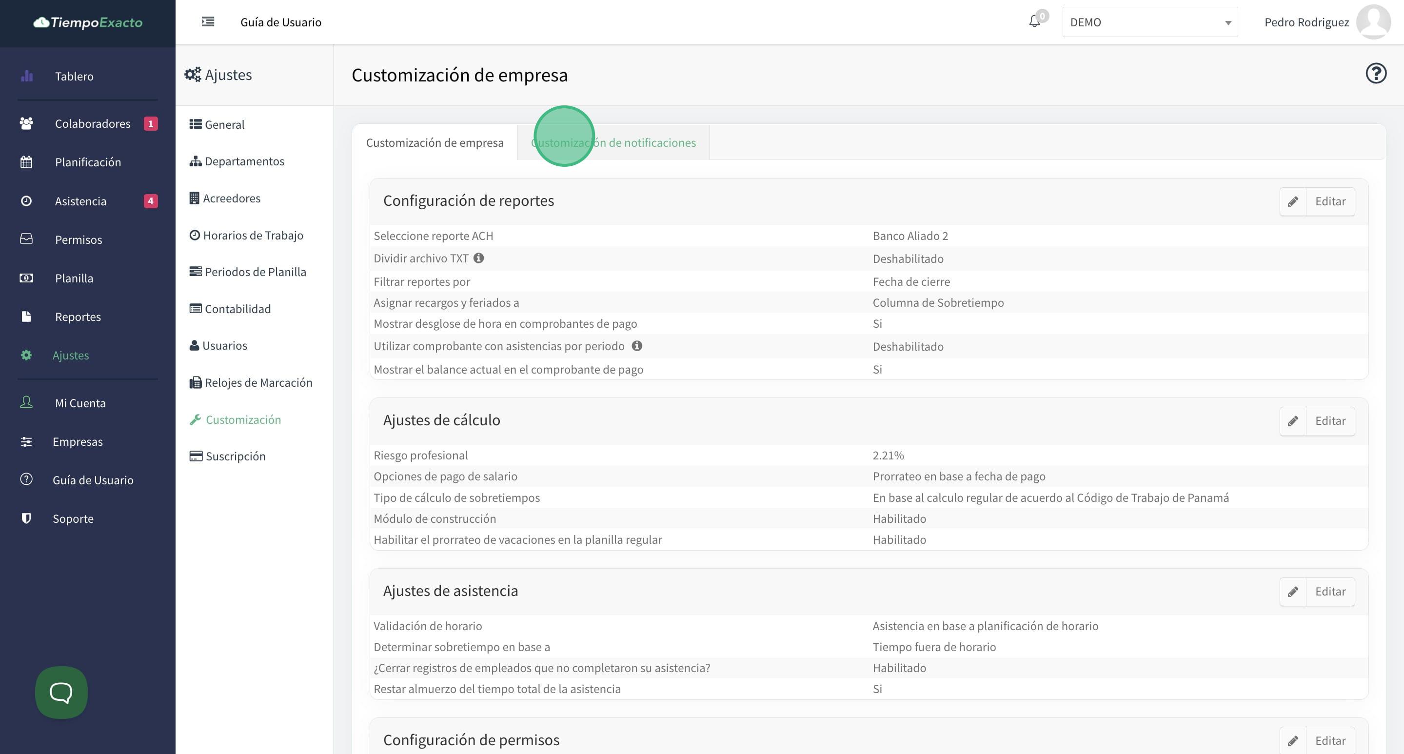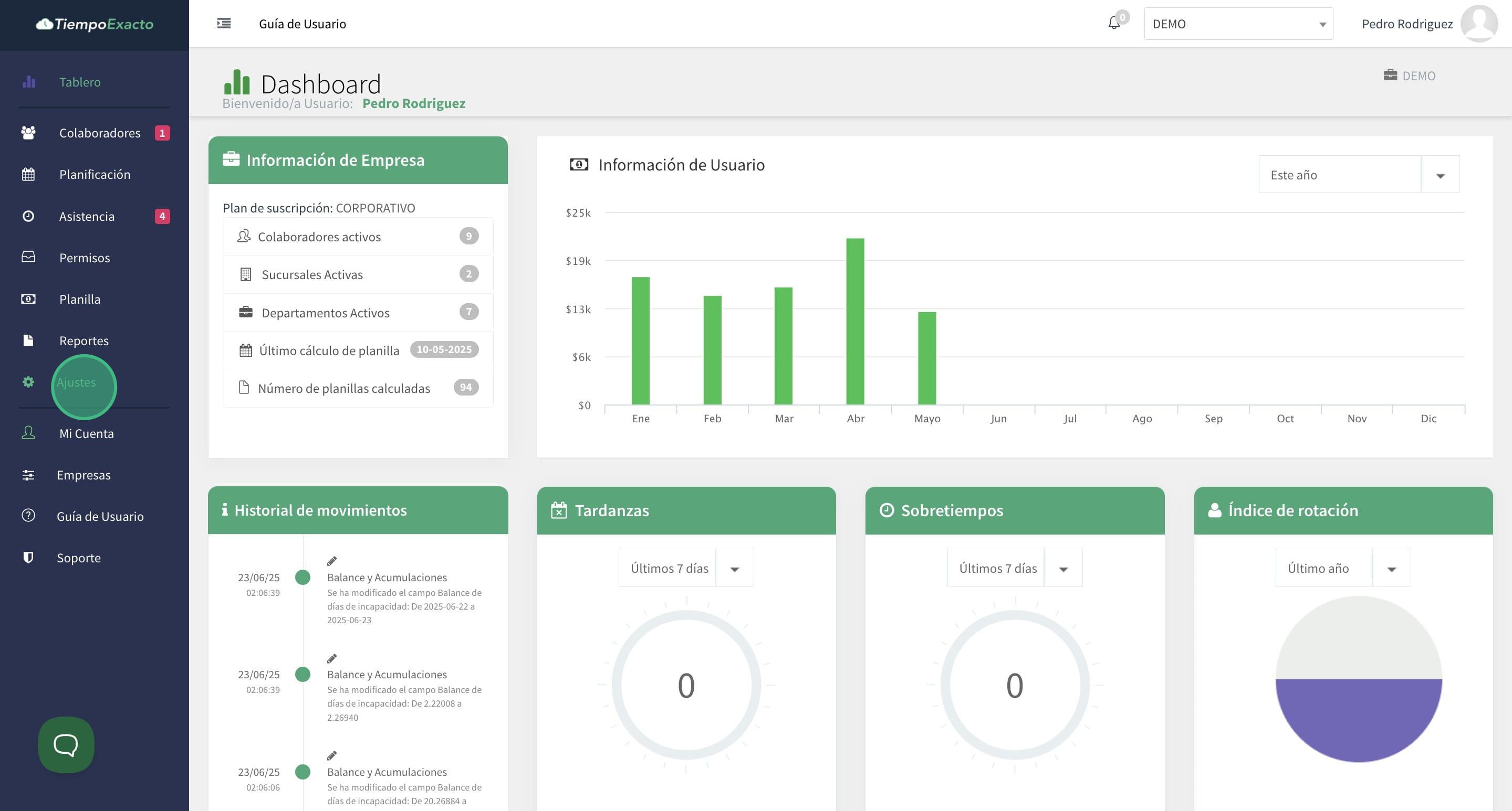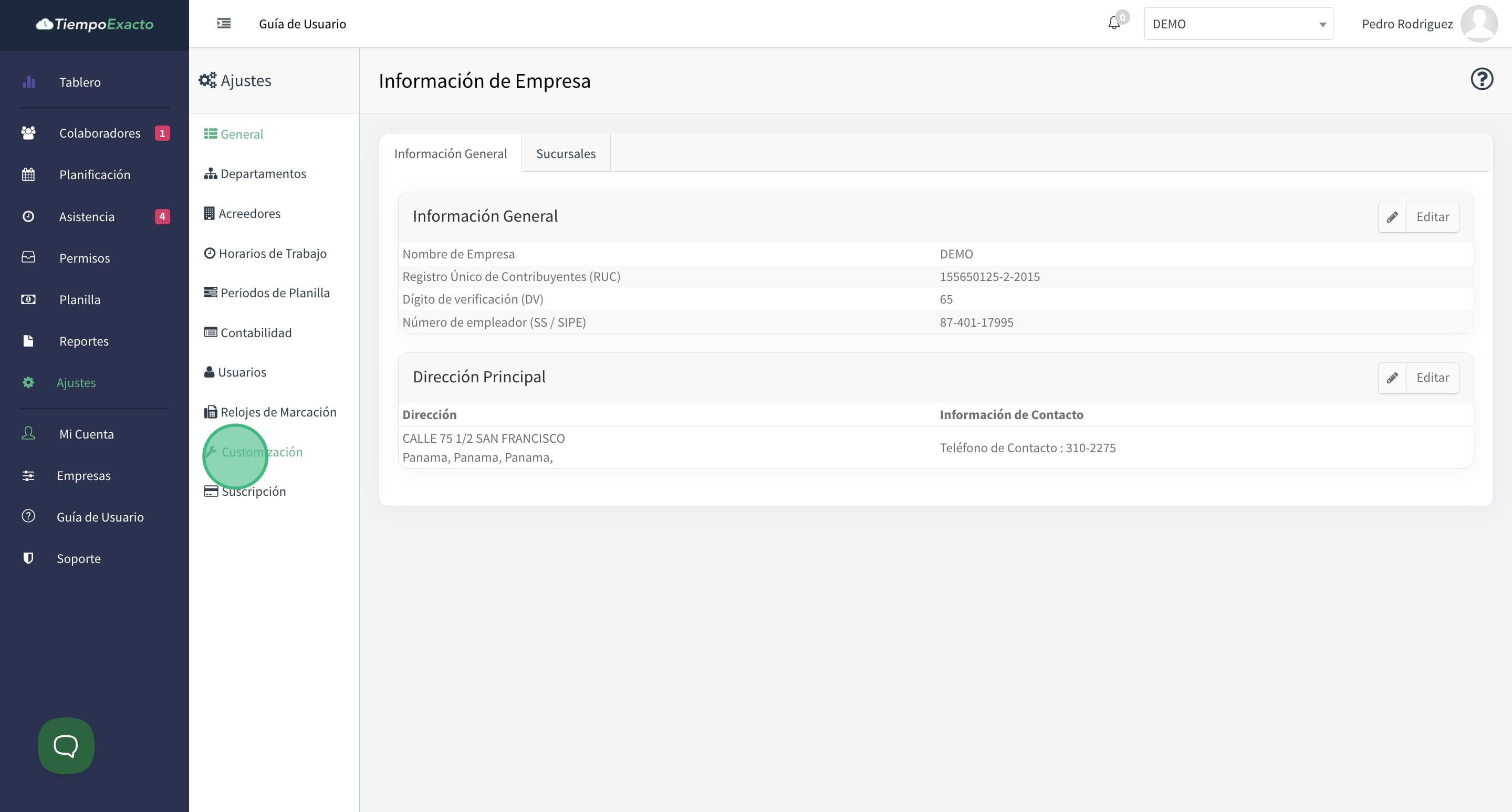 1. Navigate to https://plataforma-pa.tiempoexacto.com/dashboard#company_dashboard