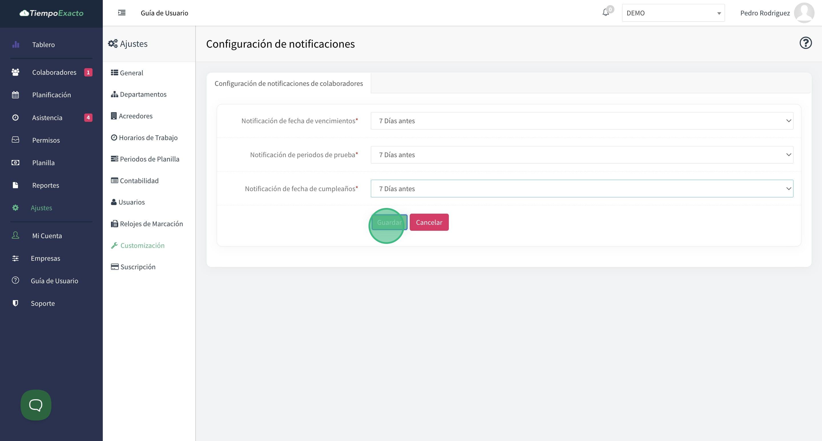 8. Selecciona con cuánta anticipación deseas recibir la notificación, 7, 15 o 30 días antes.