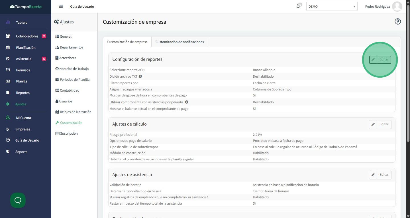 2. Paso 2: En configuración de reportes debes darle click en editar
