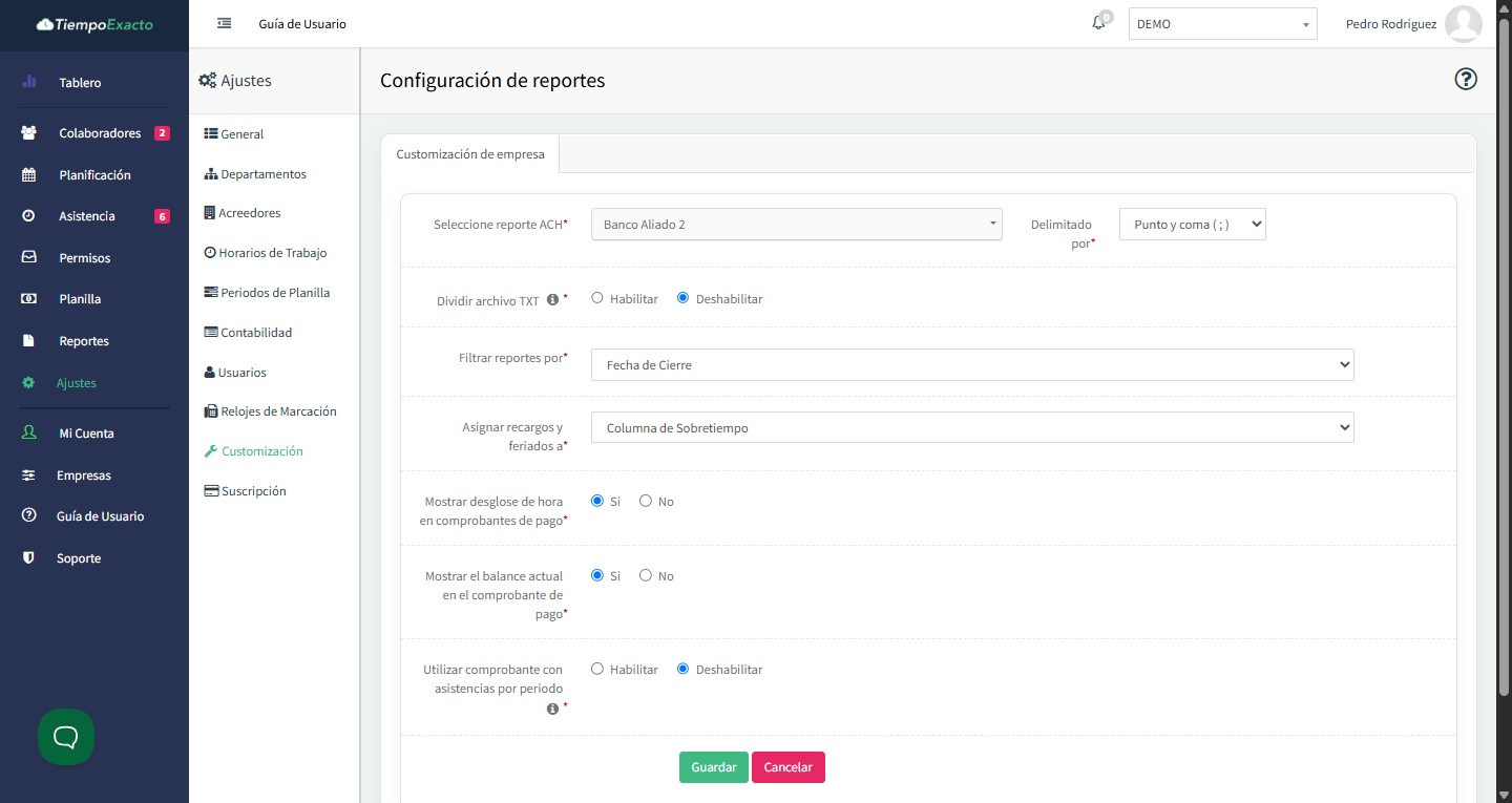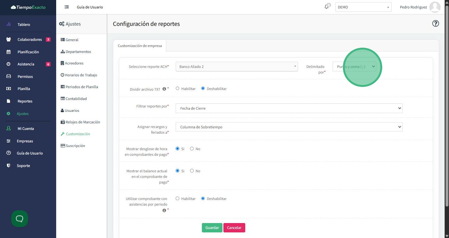 1. Si tu archivo TXT no sube al banco o te muestra un error, debemos revisar la delimitación del mismo. (La delimitación de un archivo .txt es la forma en que se separan los datos dentro del archivo) Paso 1: Entramos a Ajustes, luego a customización.