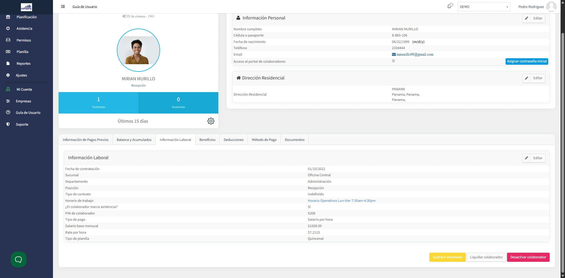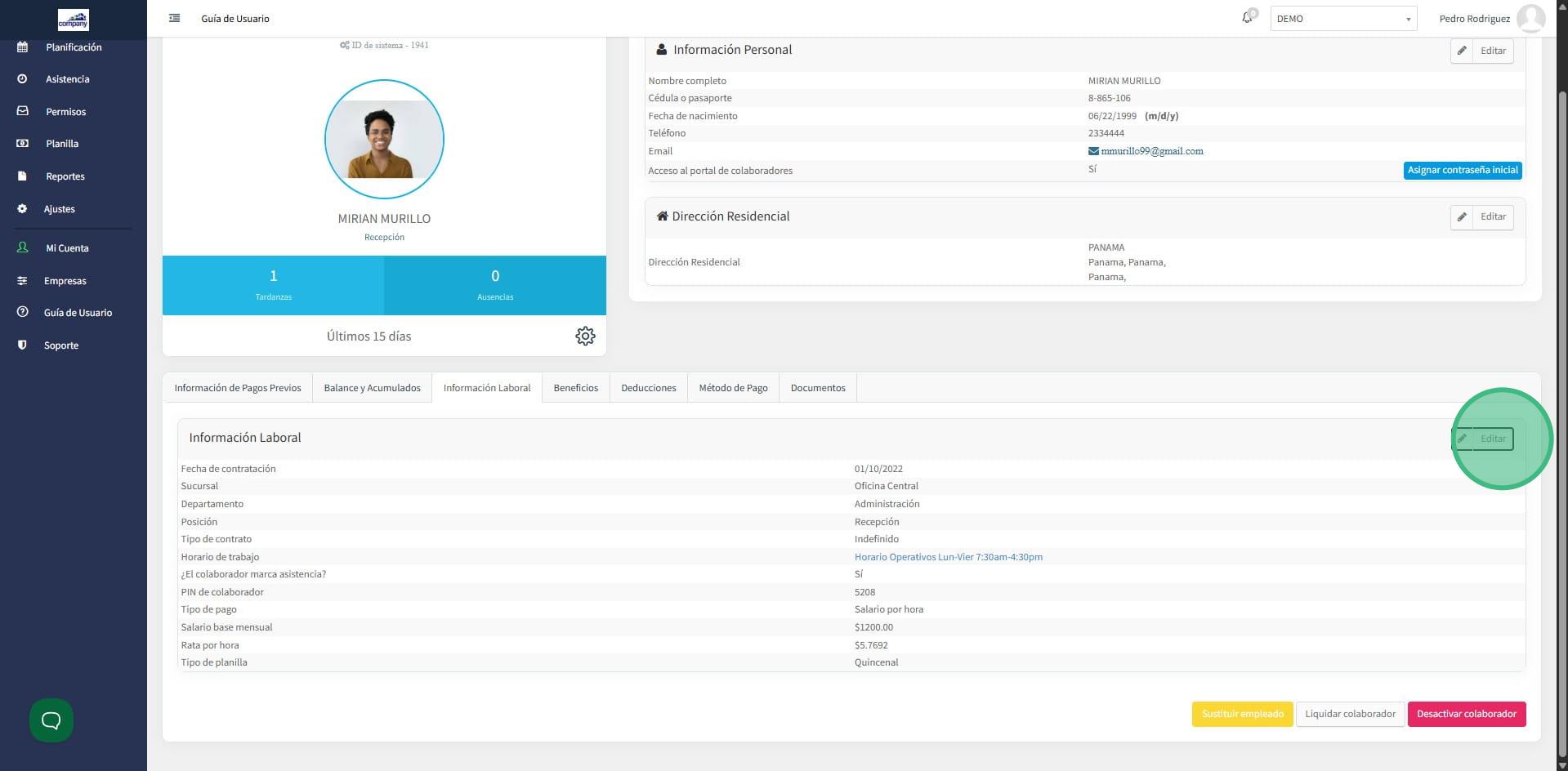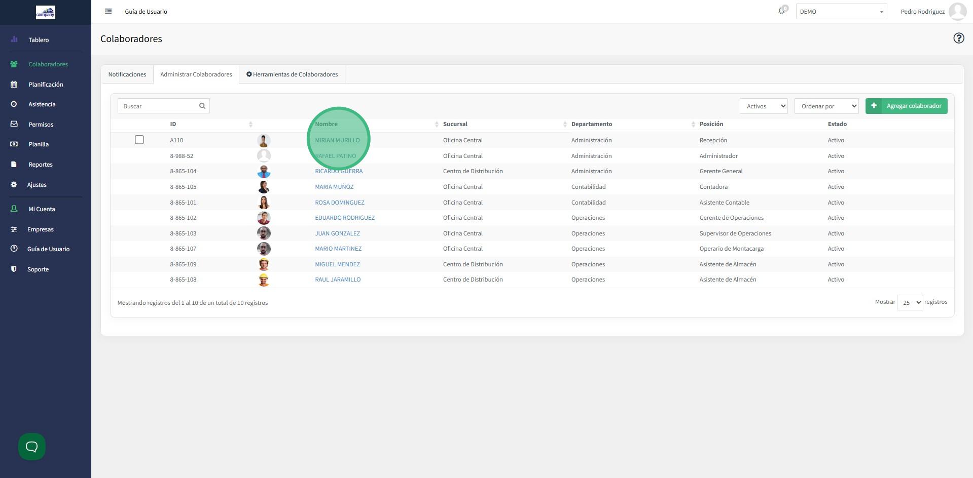 1. En el módulo de colaboradores selecciona al trabajador que le realizaremos el aumento.