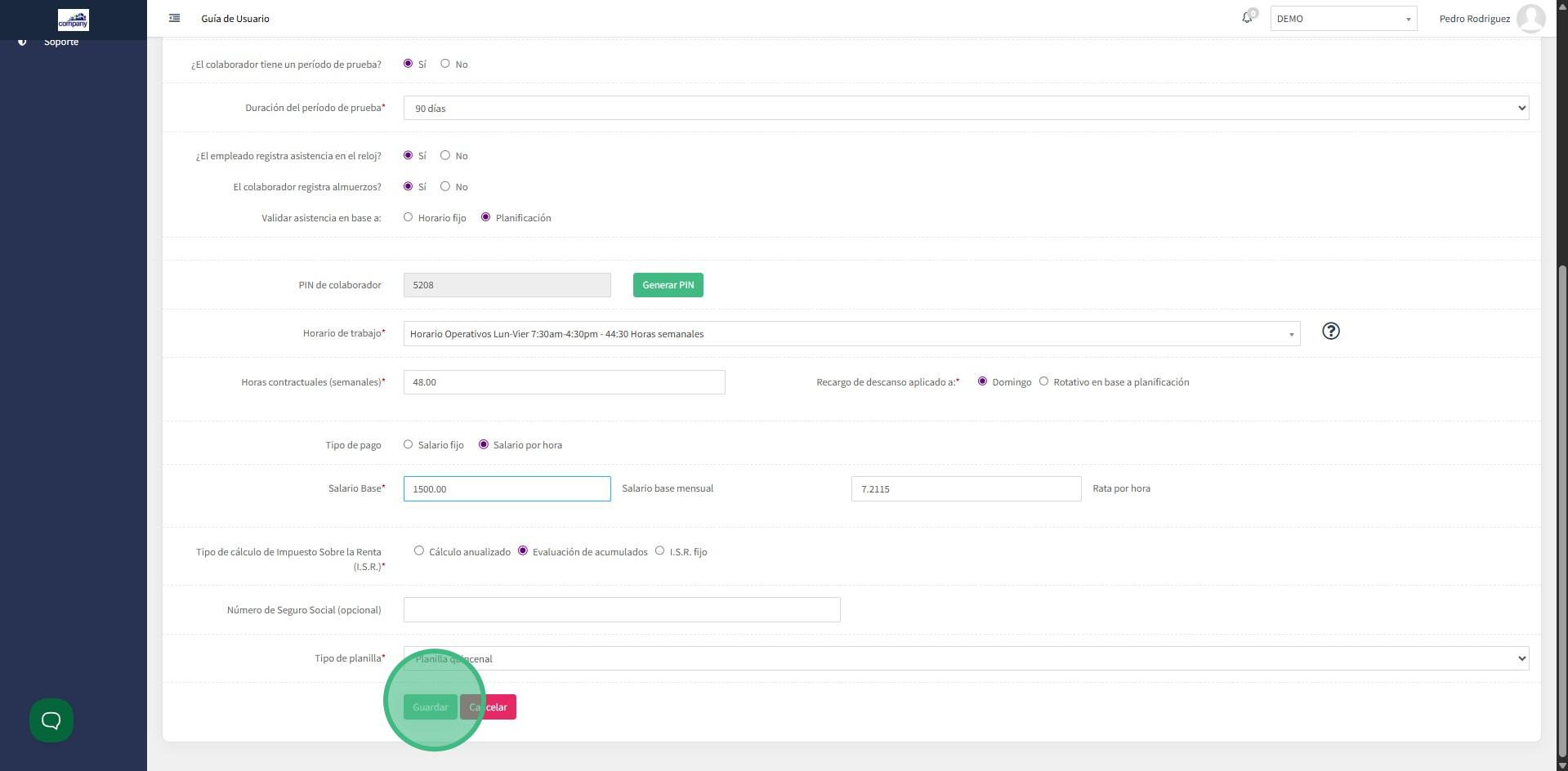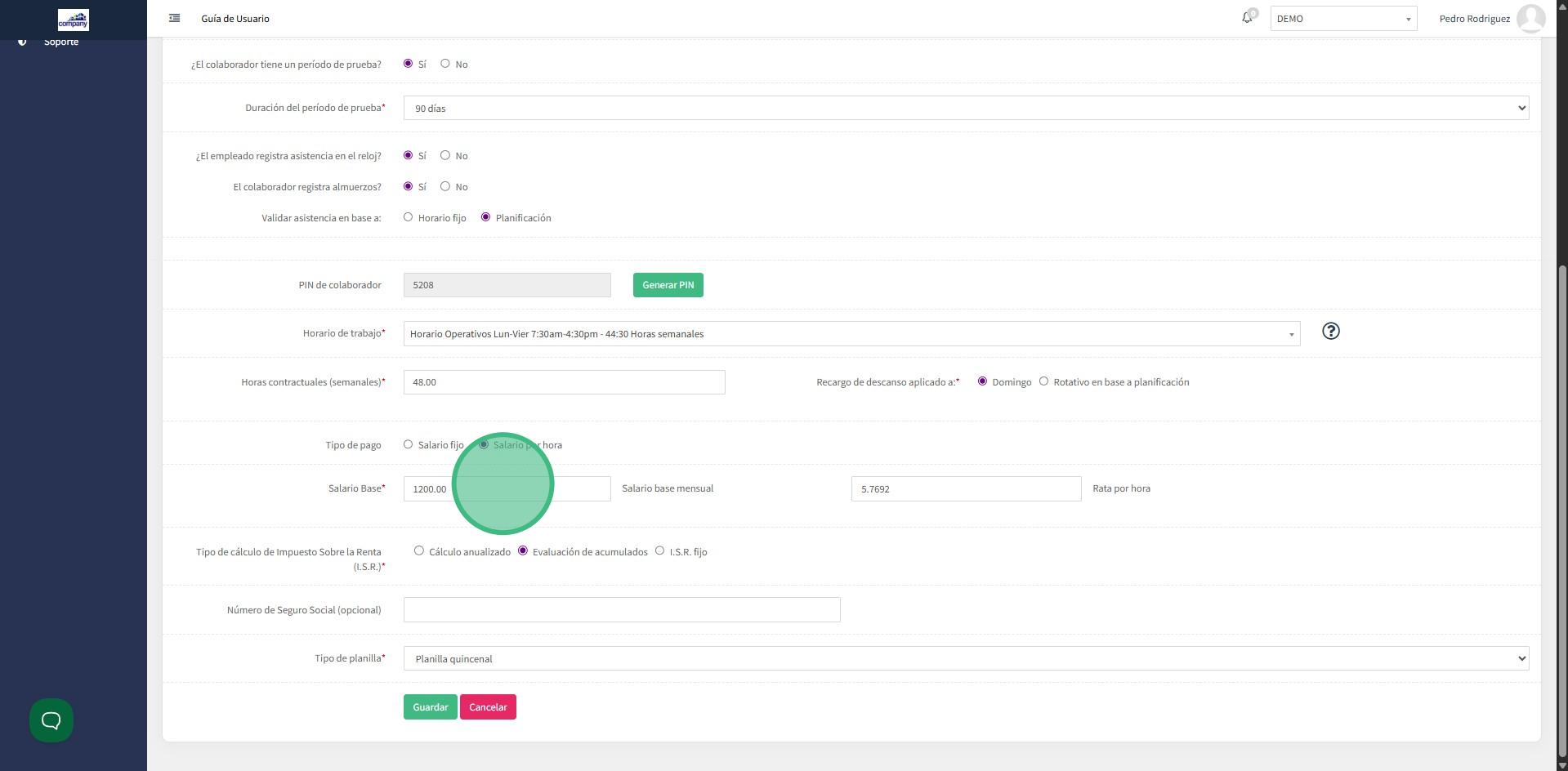 3. Edita el salario base o el salario por hora que mantiene actualmente.